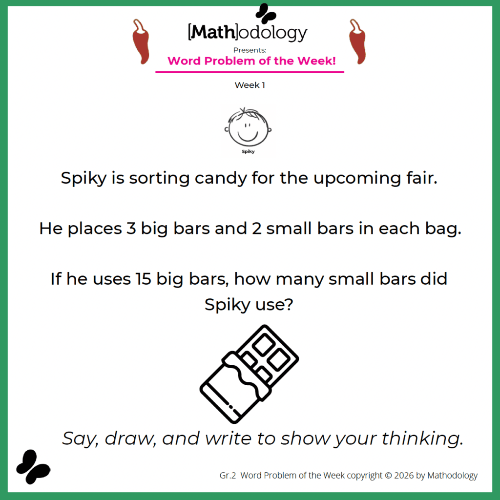 Example of Mild, Medium, and Spicy Word Problems of the Week (Grade 2):